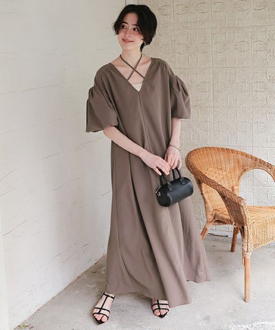 ■【ほたるさん26S/Sコラボ】【低身長さん向けサイズ有り】【titivate】【IGTV】 前後2wayリボンデザインギャザーボリュームワンピース