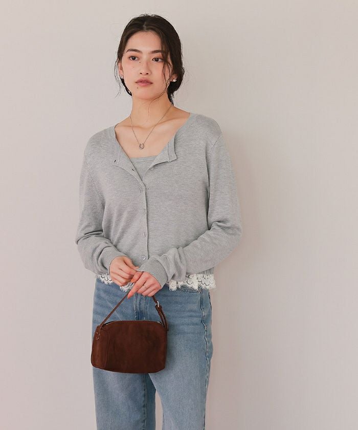 ・繊細なレースヘムが覗くキャミソール×程よく力の抜けたカーデのセットで、1枚で完成する旬のレイヤード感