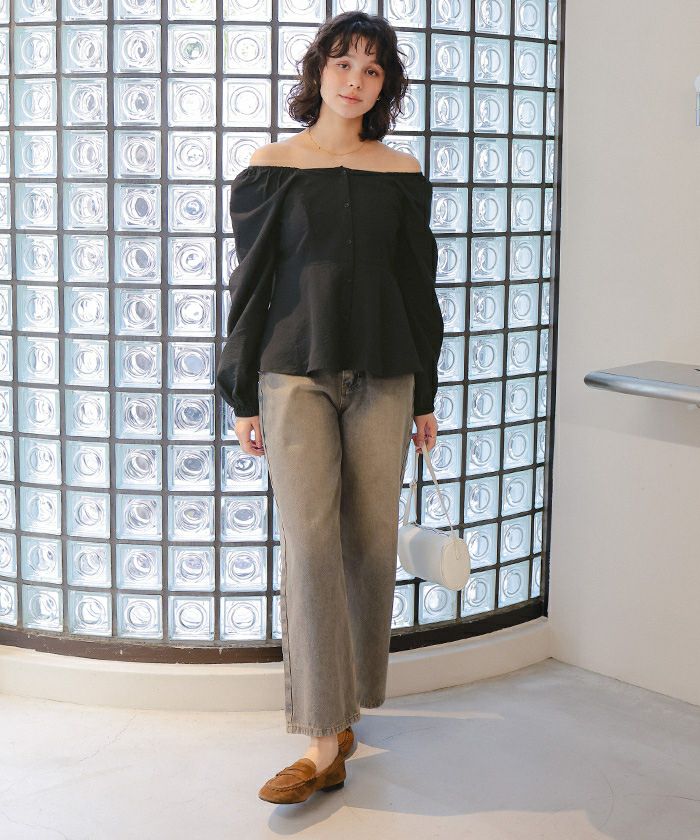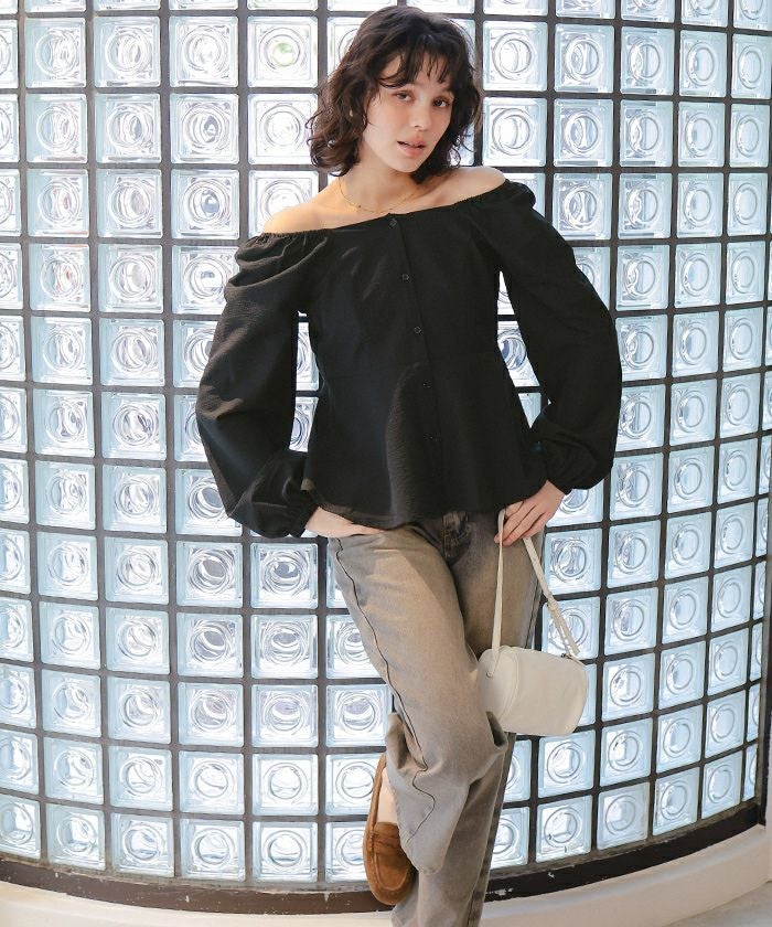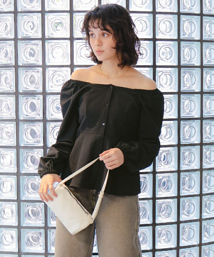 ペプラムオフショルダーブラウス