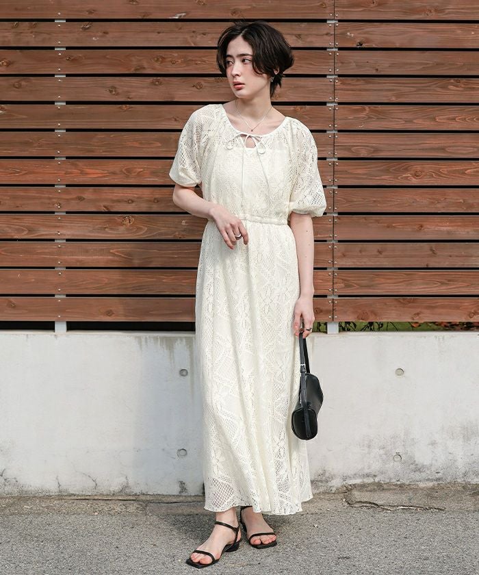 前後2wayパフスリーブレースワンピース