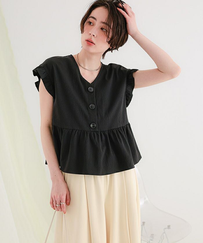 ペプラムフレンチスリーブブラウス【メール便可/100】