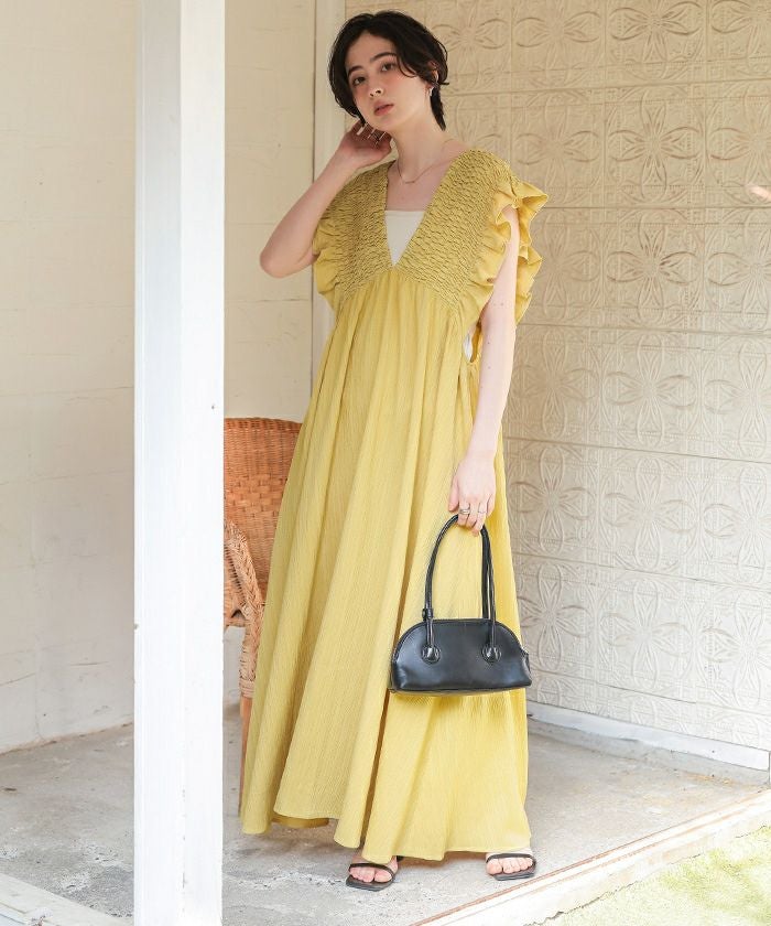 シャーリングフリルワンピース