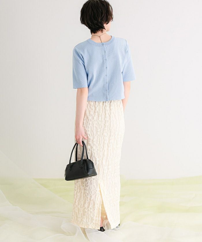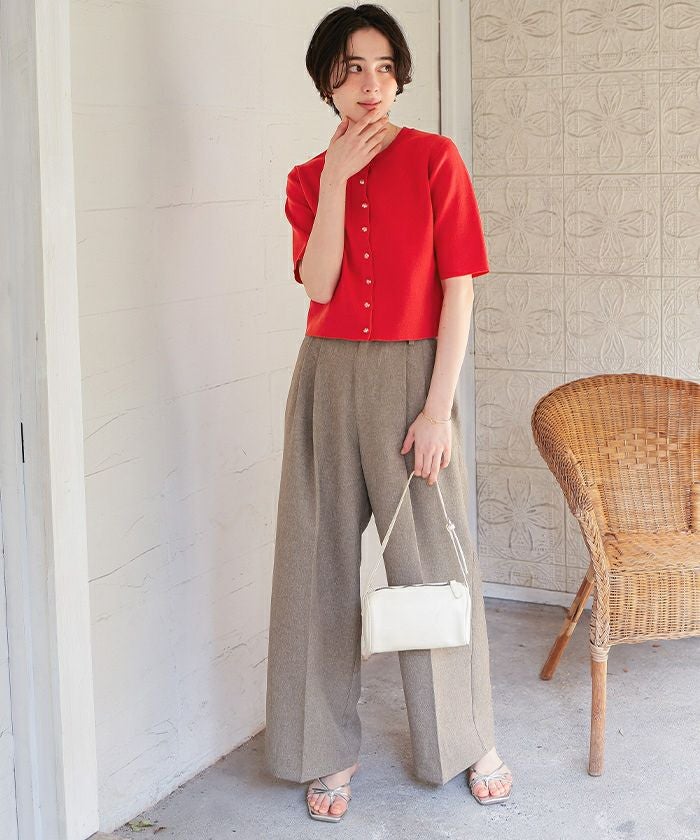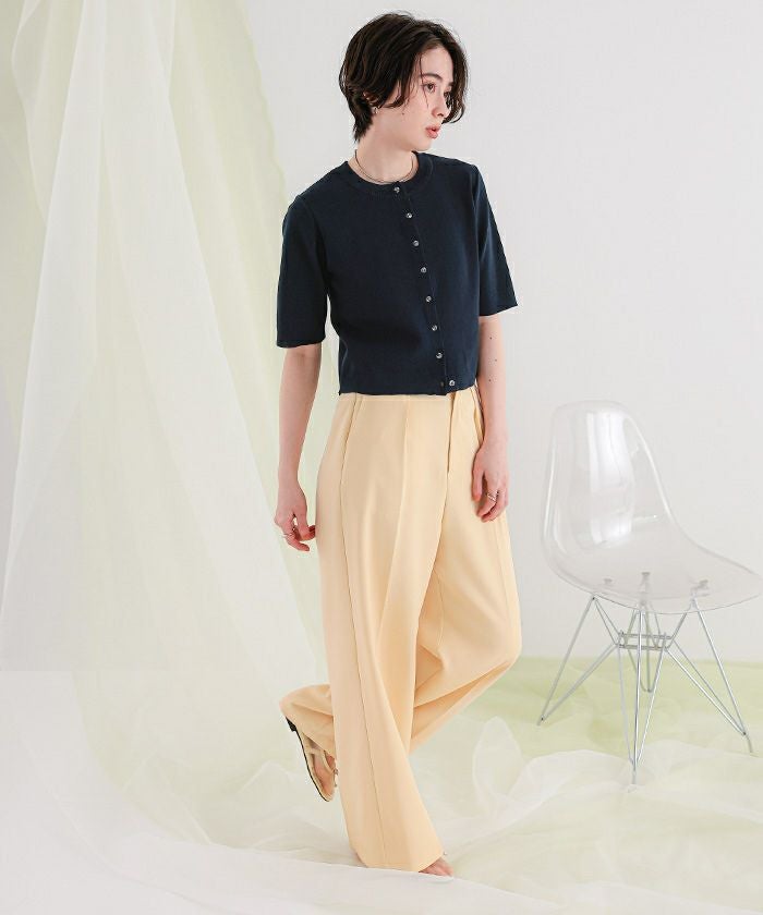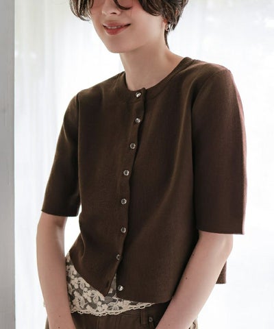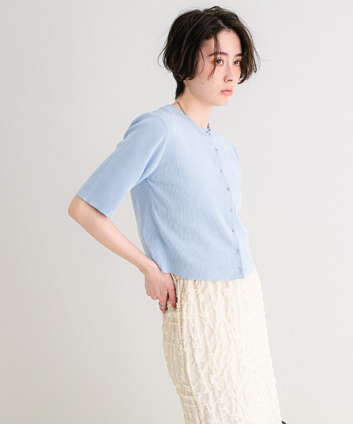 クリア釦UVケア半袖ニットカーディガン