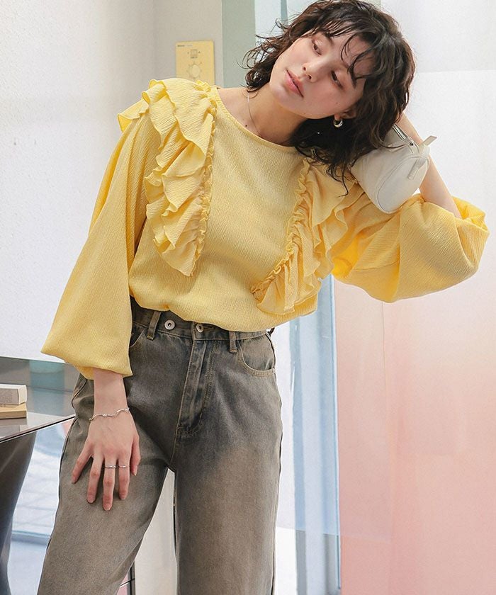 ・繊細な楊柳素材が生み出す軽やかな揺れ感で、女性らしさが香るフリルブラウス