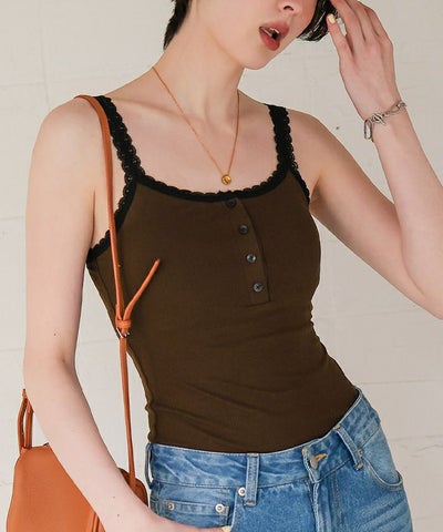 ・胸元にもさりげないレースをあしらい、インナーでありながらも見せても使えるデザイン
