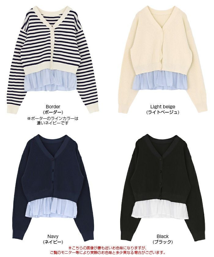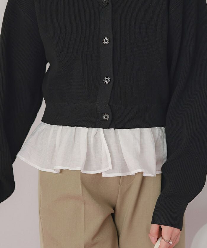 ・裾のふんわりドッキングフリルが、着こなしに上品な甘さを添える映えデザインカーディガン