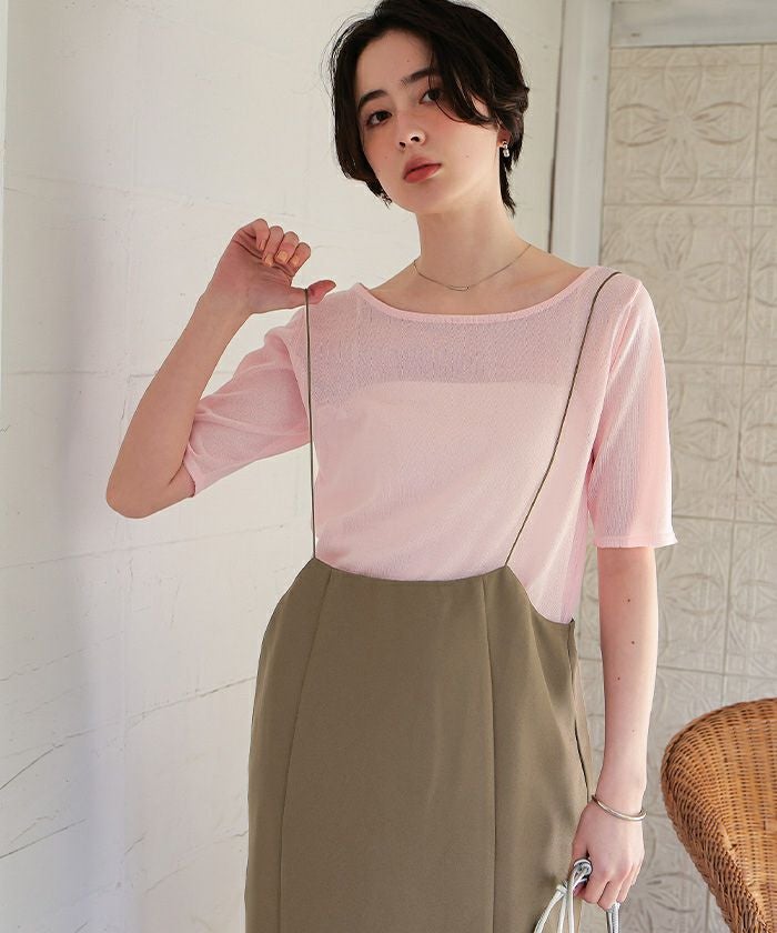 ・さらっとした肌触りの素材で、夏快適に着用できるニットトップス