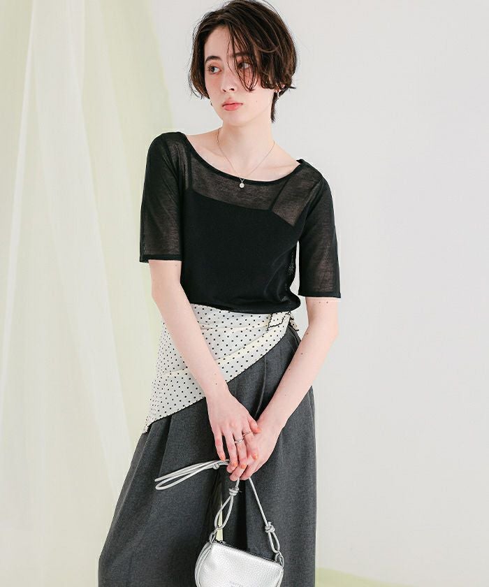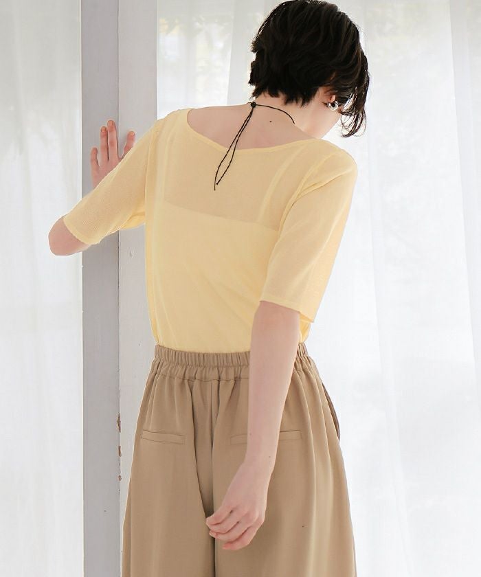 ウォッシャブルリネンタッチハーフスリーブニット