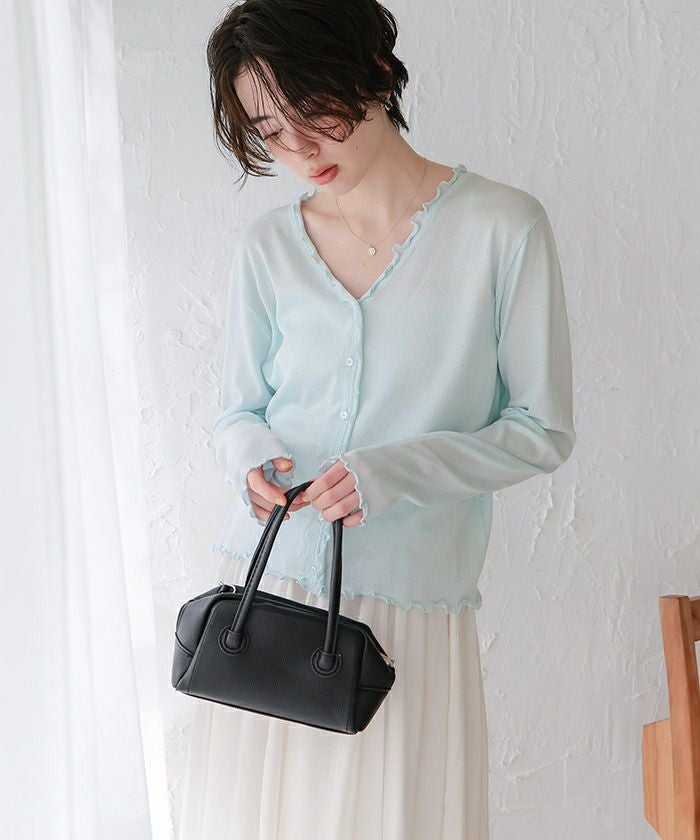 サラッとした素材で、コンパクトにたためるので、持ち歩いてもかさばらず、真夏の紫外線やクーラー対策に重宝しそうです。 プチフリルがさり気なくて、オシャレに見せてくれます。
