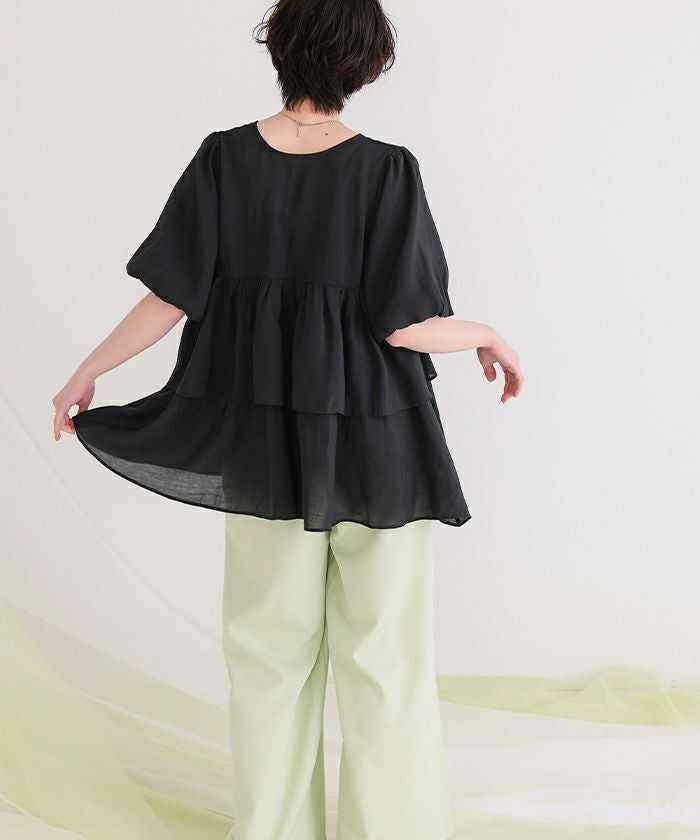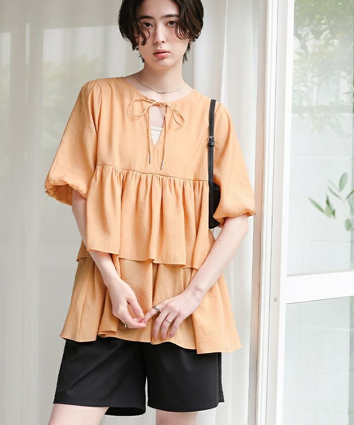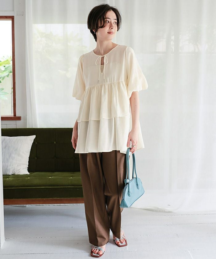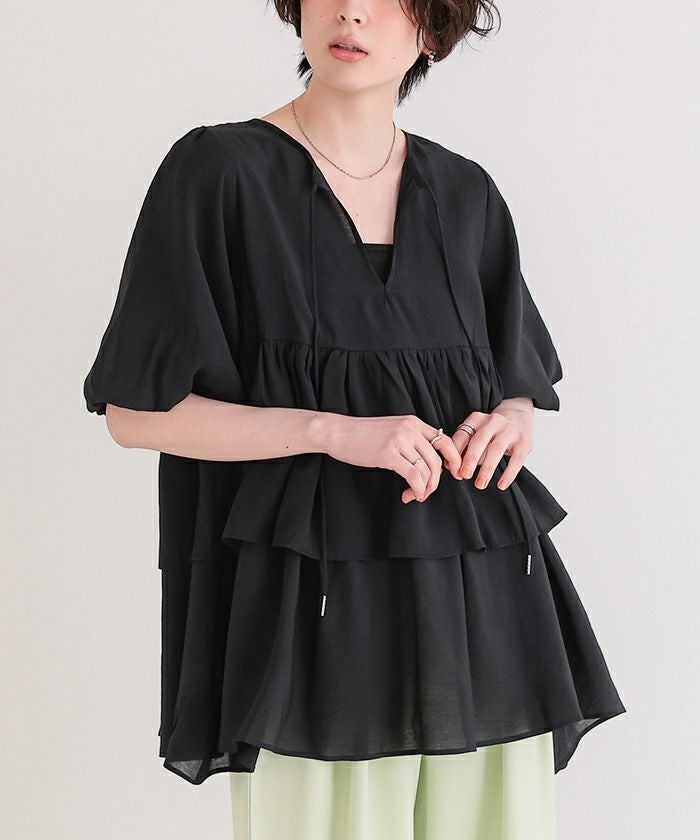 ・ふんわり重なるティアードフリルが主役。着るだけで華やぐ、甘さたっぷりのチュニックトップス