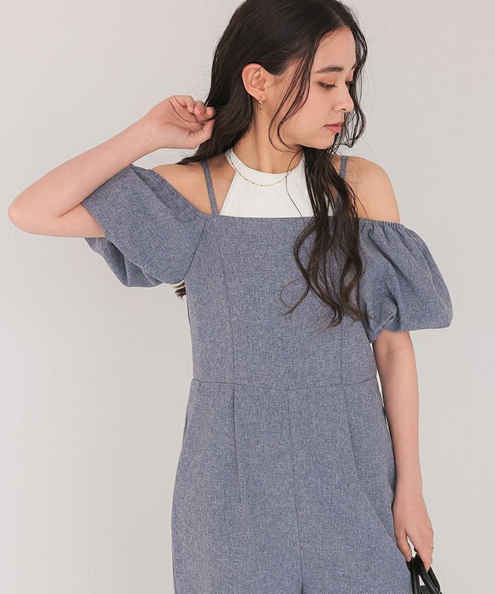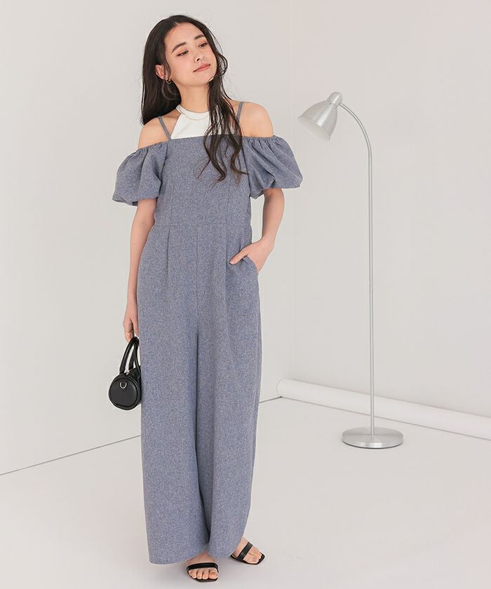 ■【titivate】 2wayオフショルパフスリーブオールインワン