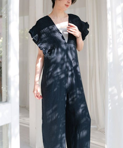 ■【低身長さん向けサイズ有り】【IGTV】 【titivate】 シャーリングフリルオールインワン