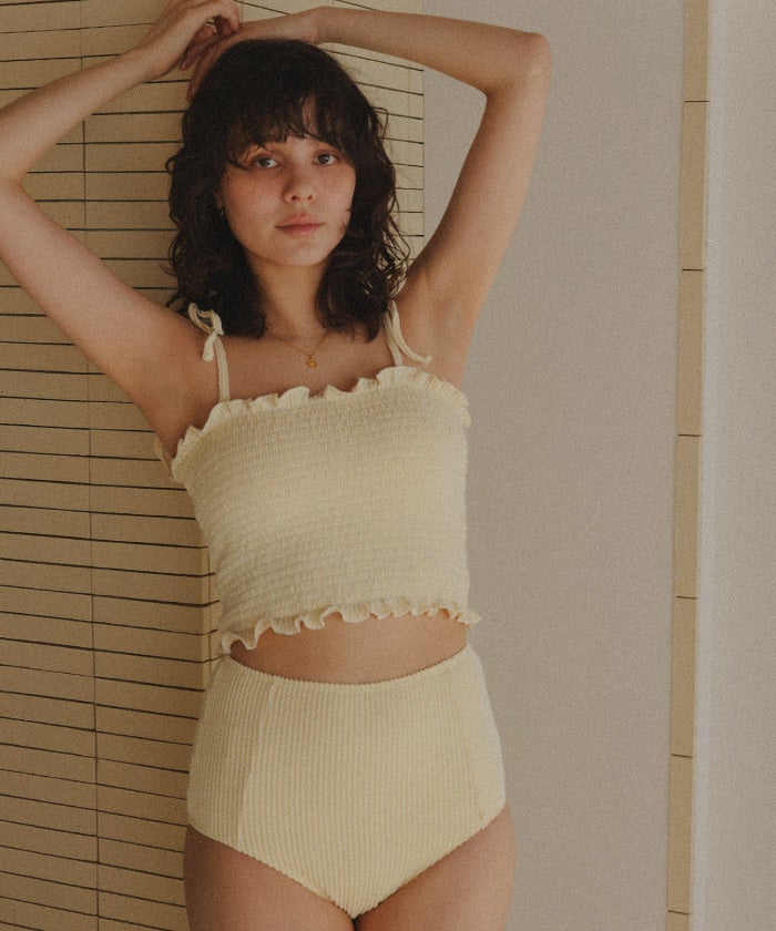 ・ジャガードリブの波柄がポイントのシャーリングバンドゥブラ×ハイウエストビキニ。