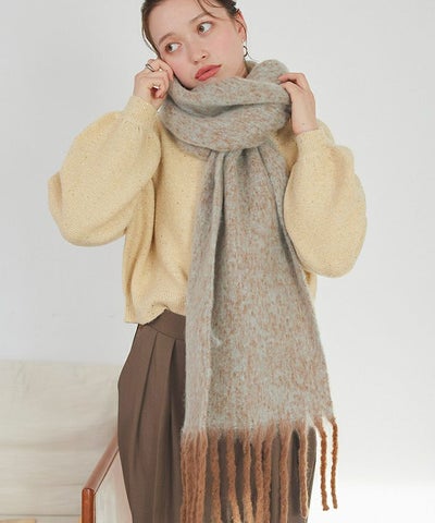 商品情報 ・シンプルなアイテムに合わせるだけでコーディネートにアクセントを加えてくれるメランジマフラー。