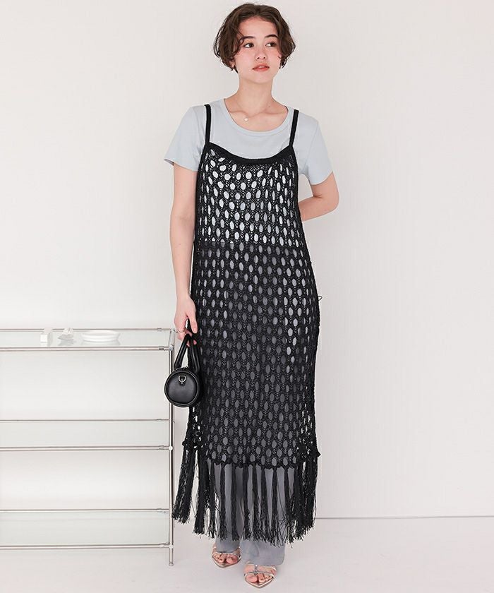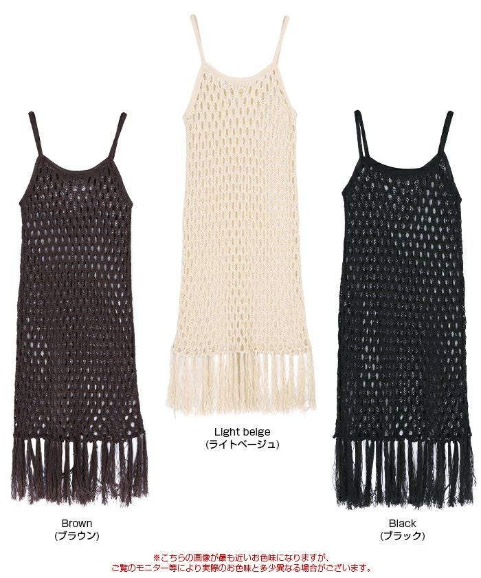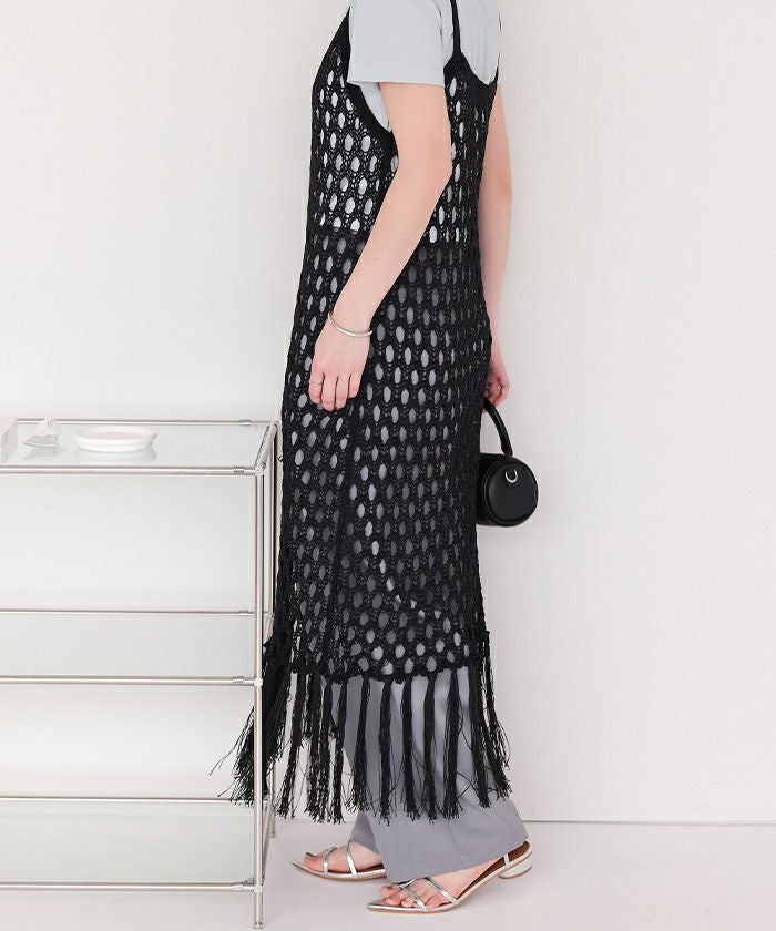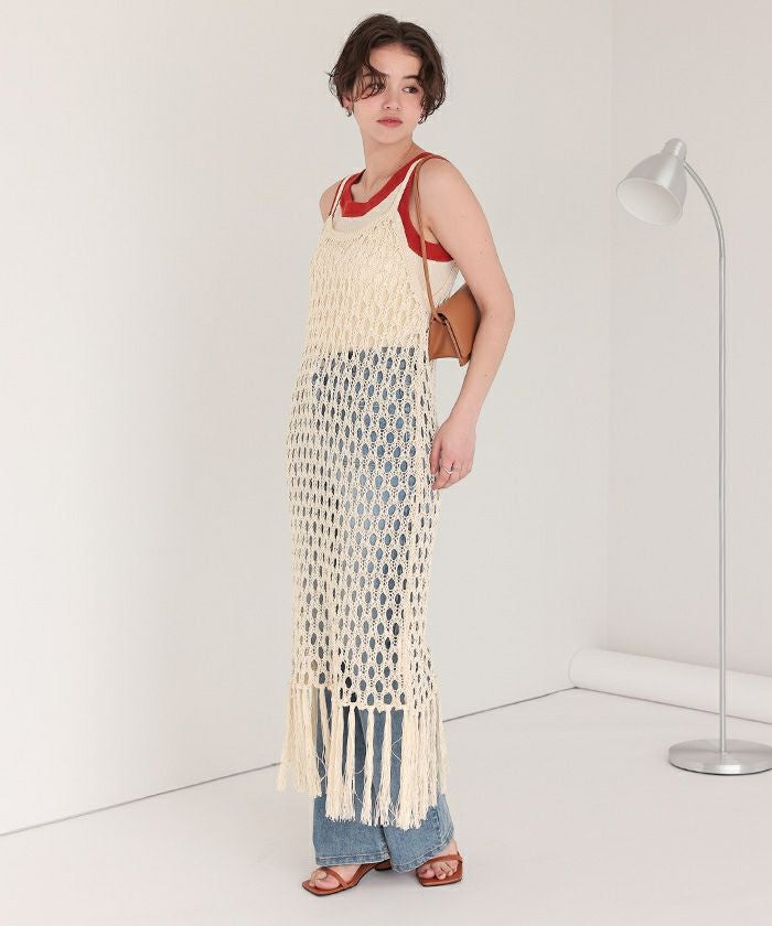 マクラメ編みフリンジワンピース