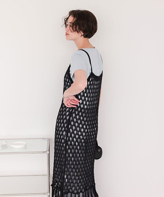 ・トレンド感のある、マクラメ編みで施された特別感のあるキャミワンピース。
