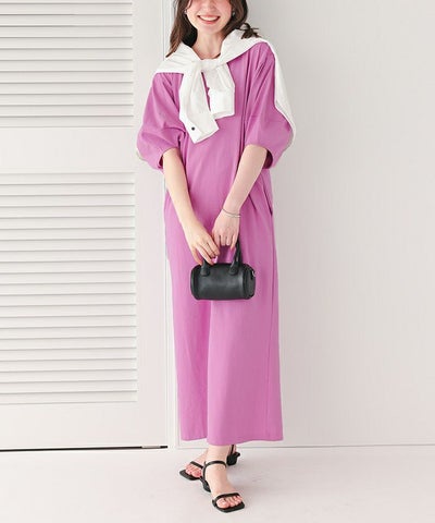 綿素材で袖があるワンピースを探していたので購入しました。カラバリも好きなブラウン、ベージュ系がありSサイズがあるワンピースなので、もう一着検討中です。 昨年のものより着脱がしやすいデザインになっていてボタン付きになっているところは良かったです。背中が少し空いている部分は涼しげだけど日焼けが気になるので開いている部分を狭くしてほしいです。あともう少しスリットが長めに入っている方が動きやすいと思いました。ウエスト部分に少しくびれがあるデザインになったら嬉しいです。(笑)来年も販売してほしいワンピースです☆