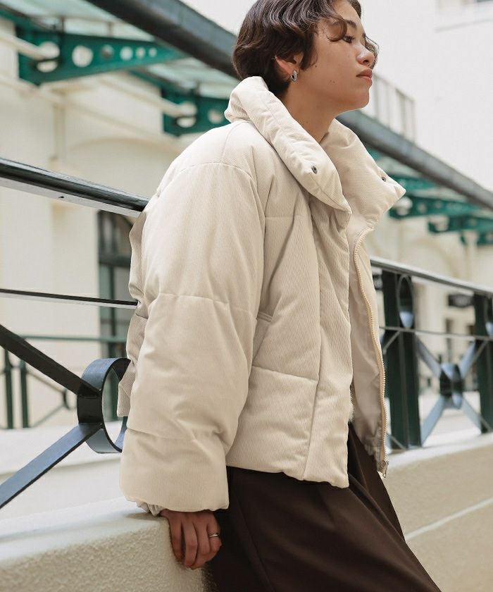 商品情報 ・季節感たっぷりのコーデュロイ素材で仕上げたフェイクダウン。軽やかで暖かな着心地が魅力
