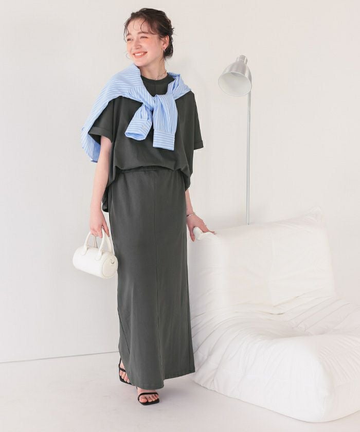 チャコールM購入。セットアップで上下別に着回せてお得。上はゆったり、スカートはウエストゴムで楽ちん。着心地もよいです。