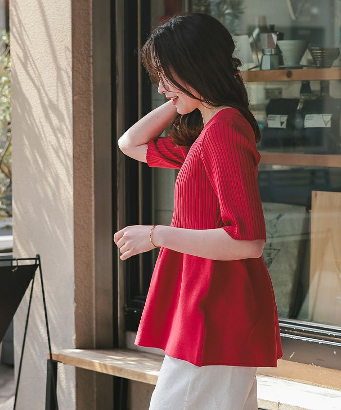 ・体型カバーも叶うシルエットで、リブ素材なのでよりスタイルアップして見せてくれる1枚で着映えするトップス