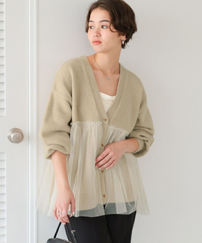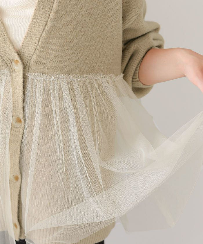 【titivate】【期間限定★SALE】 チュールドッキングVネックニットカーディガン