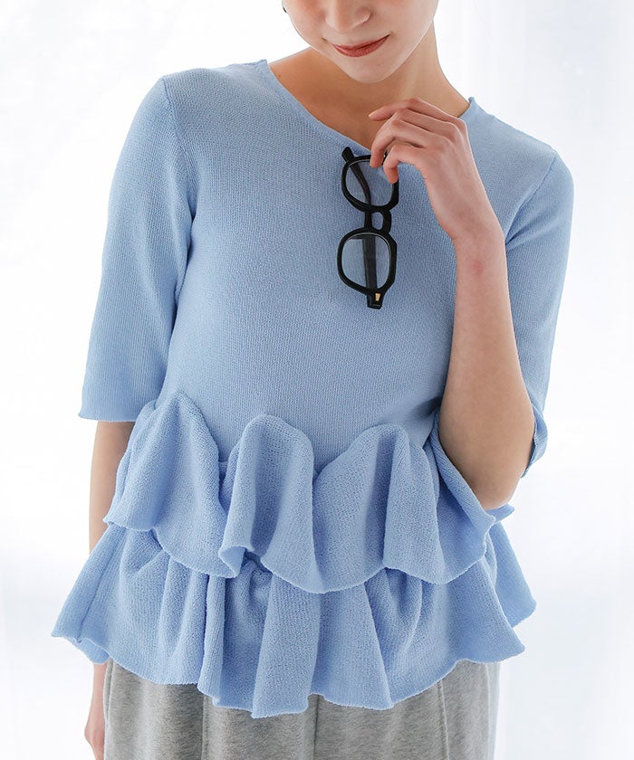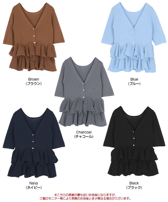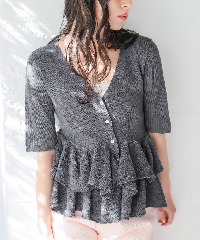 ハーフスリーブフリルヘムニットカーディガン