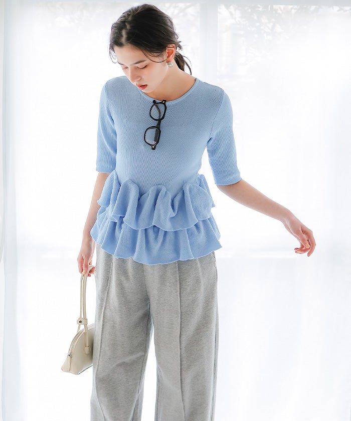 ・裾にあしらったフリルデザインが、動くたびふわっと揺れて大人の甘さをプラス