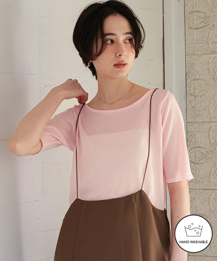 ウォッシャブルリネンタッチハーフスリーブニット