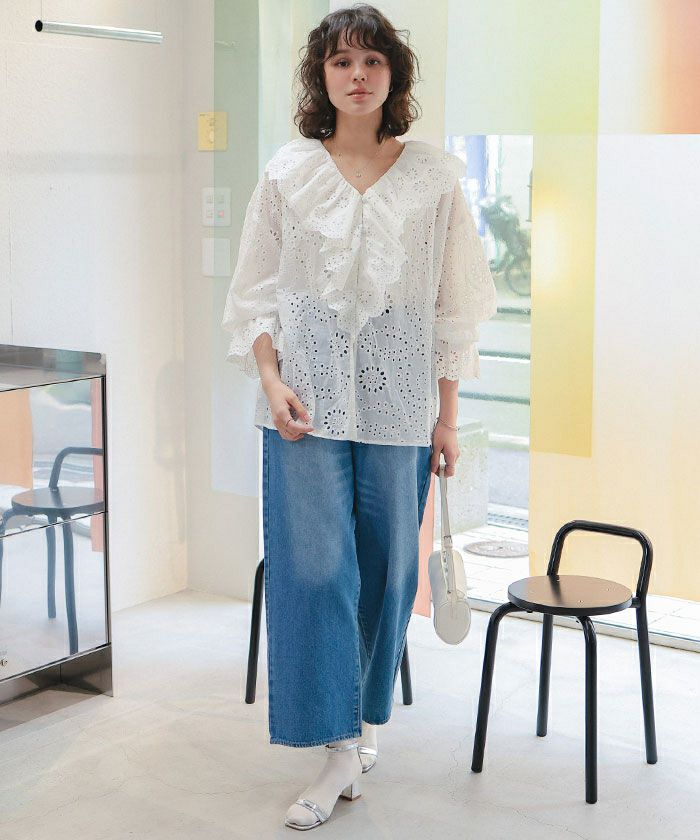 ・甘すぎず上品に着こなせる、花柄刺繍フリルブラウス