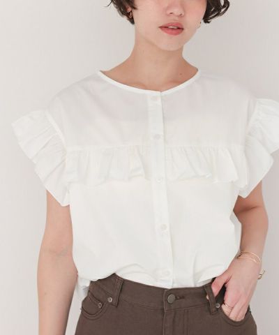 ・シンプルながらもフリルディテールが可愛いフレンチスリーブフリルブラウス。