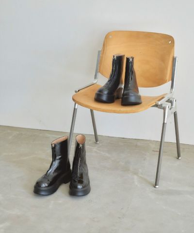 普段23センチ、Mサイズ購入。 エナメルを購入しましたが、テカテカ感は思ったよりないのでなんでも合わせやすいです。 厚底で歩きやすいですが、ふくらはぎの下がなんとなく痛い感じがしました。(靴の上部が当たるから?) 大きな靴ずれはなく、ジップデザインも可愛く、防寒にもなるので重宝してます。