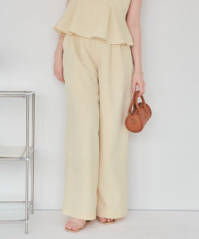 ウエスト小さめ、お尻大きめ… なんとなくバランスの悪いパンツだと思いました。セットアップに出来るならと購入しました。アイボリーではなくて薄いイエローみたいなカラーです。生地はサラッと薄く裏地付きでした。