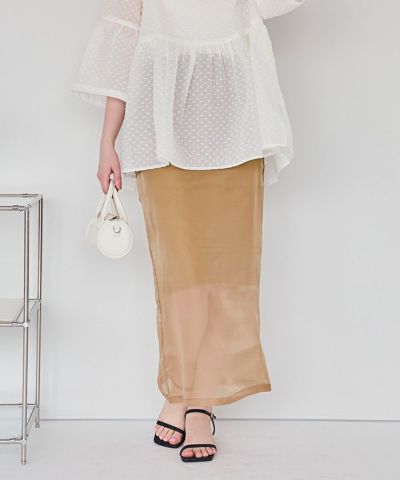 カサカサしたオーガンジーで、黒いトップスと恐ろしくよく合います。 膝下がシアーなのが色気があって気に入りました。