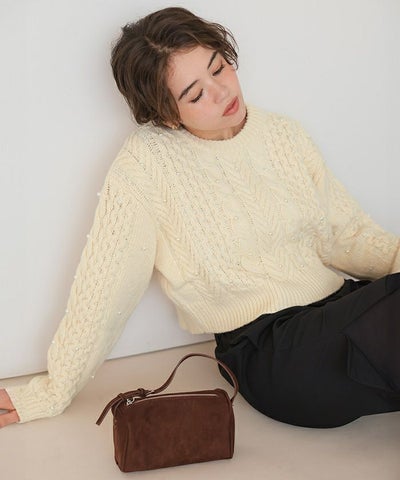 厚めのニットで温かくパールがポイントになります
