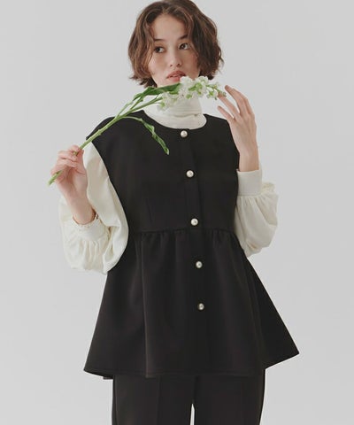 ペプラムシルエットが可愛いなと思い購入しました。 パールボタンもコーデのポイントになり、高見え感があってすごく気に入ってます! インナー使いで幅広く着回せるので沢山着たいです!