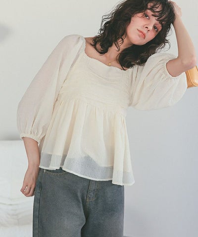 シアージャガードスクエアネックペプラムトップスのレビュー