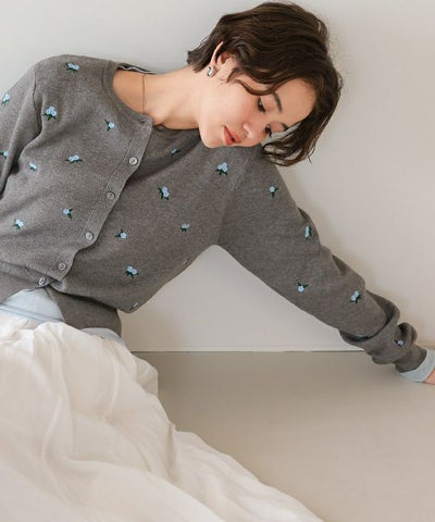 フラワー刺繍カーディガン