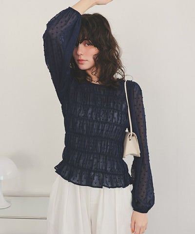 シアー楊柳ぽこぽこシャーリングトップス【メール便可/100】