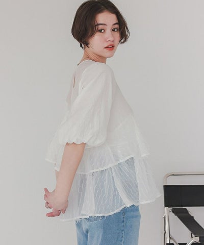 ジャガードシフォンフレアドッキングトップス