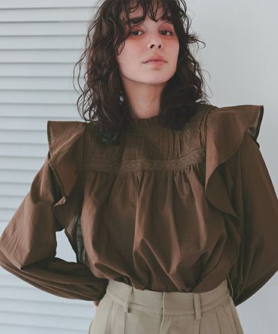 ピンタックデザインフリルブラウス