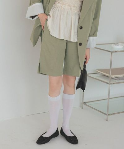 ヘビロテ 買ってから毎日履いてます!! 普通丈の方ですが 良い感じに綺麗めにもカジュアルにも着れて最高!! 秋はブーツと合わせようかなー ゴム万歳!! アラフィフでも着れるハーフパンツにやっと出会えた!