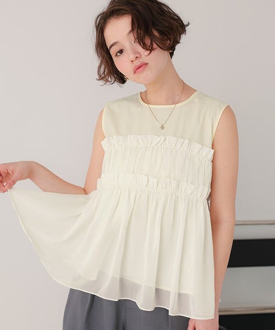 ノースリの夏服探していて購入しました。 背中の切り替え部分は綿かと思っていましたがポリエステルで全体的にお洋服がシャカシャカします。 久々購入だったのでMにしたのですが肩幅が足りなかったようでLにすればよかったです。 デザインはイメージ通りで素敵でした。