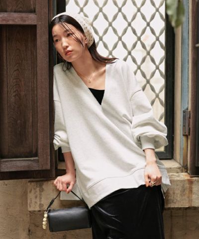 薄めのスウェット素材です。真冬は寒そうですが中にニットを着たら良いかも。大きめのつくりでゆるっと着られるのが可愛いです。