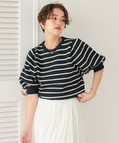 ハーフボリュームスリーブニットトップス
