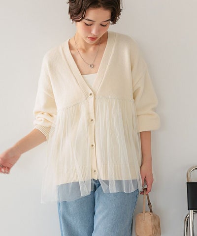 チュールドッキングVネックニットカーディガン