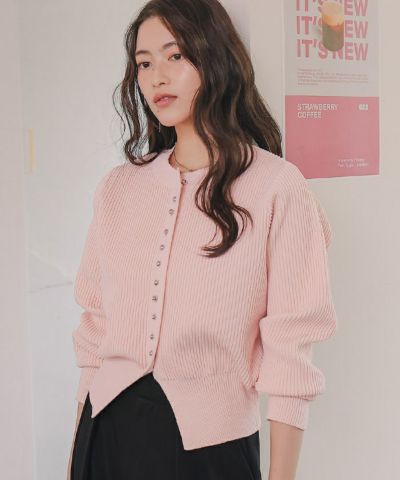 ミニシルバー釦デザインニットカーディガン