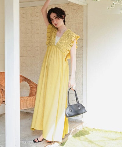 シャーリングフリルワンピース