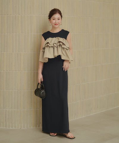 フリルキャミソールトップス/リブカットソーワンピースセット