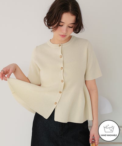 ゴールド釦半袖ペプラムニットカーディガンのレビュー