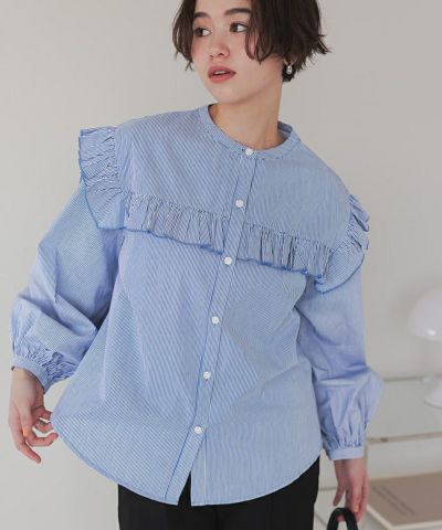 ブラウス派で、いろんなブラウスをこちらのお店で購入しています。普段ジーンズが多く、それに合わせるブラウスはフリルやリボンの可愛い系が好きです。ストライプが入っているので、スッキリ見えるのでお気に入りです。